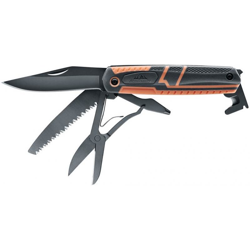 Die moderne Form eines Offiziersmessers: mit 5 verschiedene Werkzeugen und insgesamt 7 Funktionen ist dieses Multitool immer zur Stelle. Sogar ein Glasöffner und ein Dösenöffner gehören dazu, eine Säge mit verschränkten Zähnen ebenso wie eine Schere, natürlich eine scharfe Messerklinge und einem Gurtschneider.