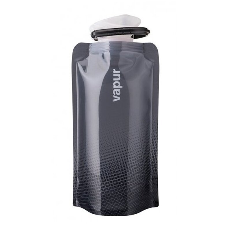 Die VAPUR Anti-Flasche steht, wenn sie voll (und sogar, wenn sie halbvoll) ist, und kann im leeren Zustand zusammengerollt oder -gefaltet werden. Der Karabinerhaken sorgt für leichtes Anbringen an Rucksäcken, Taschen und allem, was Haken oder Schlaufen hat. Außerdem umschließt er platzsparend die leere, zusammengerollte Falt-Flasche.
